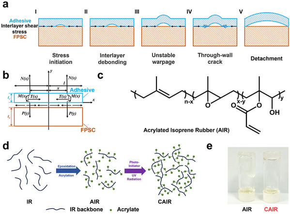 Abstract: The functional layers of flexible perovskite solar cells (FPSCs) are subjected to significant stress during bending, causing structural failure and declining power conversion efficiency. To alleviate stress, a neutral plane (NP) is introduced by positioning the functional layers at the center of the device, with top metal electrode encapsulated by a protective layer. However, adhesive detachment remains a critical issue during multiple bending cycles, and the underlying mechanism remains unclear. In this study, a systematic analysis of the detachment behavior in NP-FPSC reveals that commercial adhesives with high Young's modulus and low adhesion strength struggle to withstand interlayer shear stress during bending, which triggers detachment between adhesives and electrodes. To address this issue, a crosslinkable polymer acrylated isoprene rubber (AIR) is designed with long linear polyisoprene main chain and acrylate side chains, providing high flexibility and reduced chain segment movement. AIR can be crosslinked under UV irradiation to form a stable network with ultralow Young's modulus and high adhesion strength, ensuring a strong bond between the protective layer and FPSCs, constructing stable NP-FPSCs. The resultant NP-FPSCs demonstrate excellent mechanical stability, retaining 92.8% of their initial efficiency after 50 000 bending cycles at a radius of 4 mm, meeting the IEC 62715-6-3 standards.