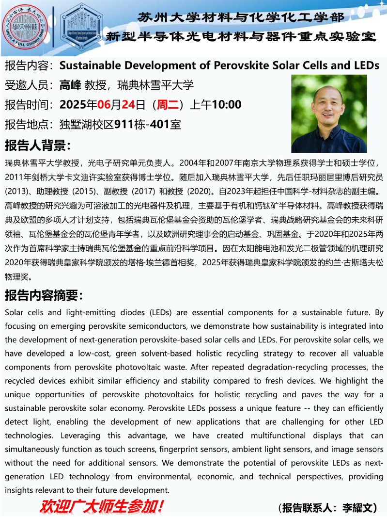 Sustainable Development of Perovskite Solar Cells and LEDs
