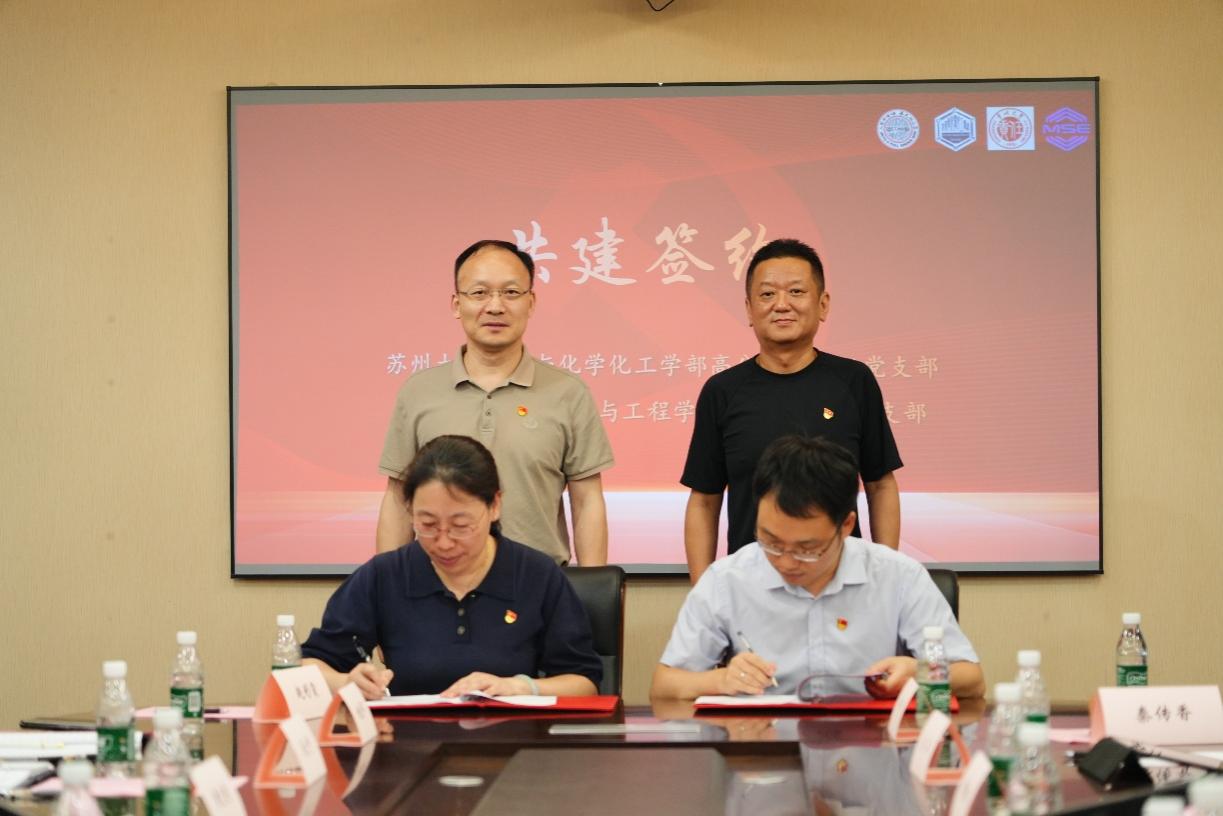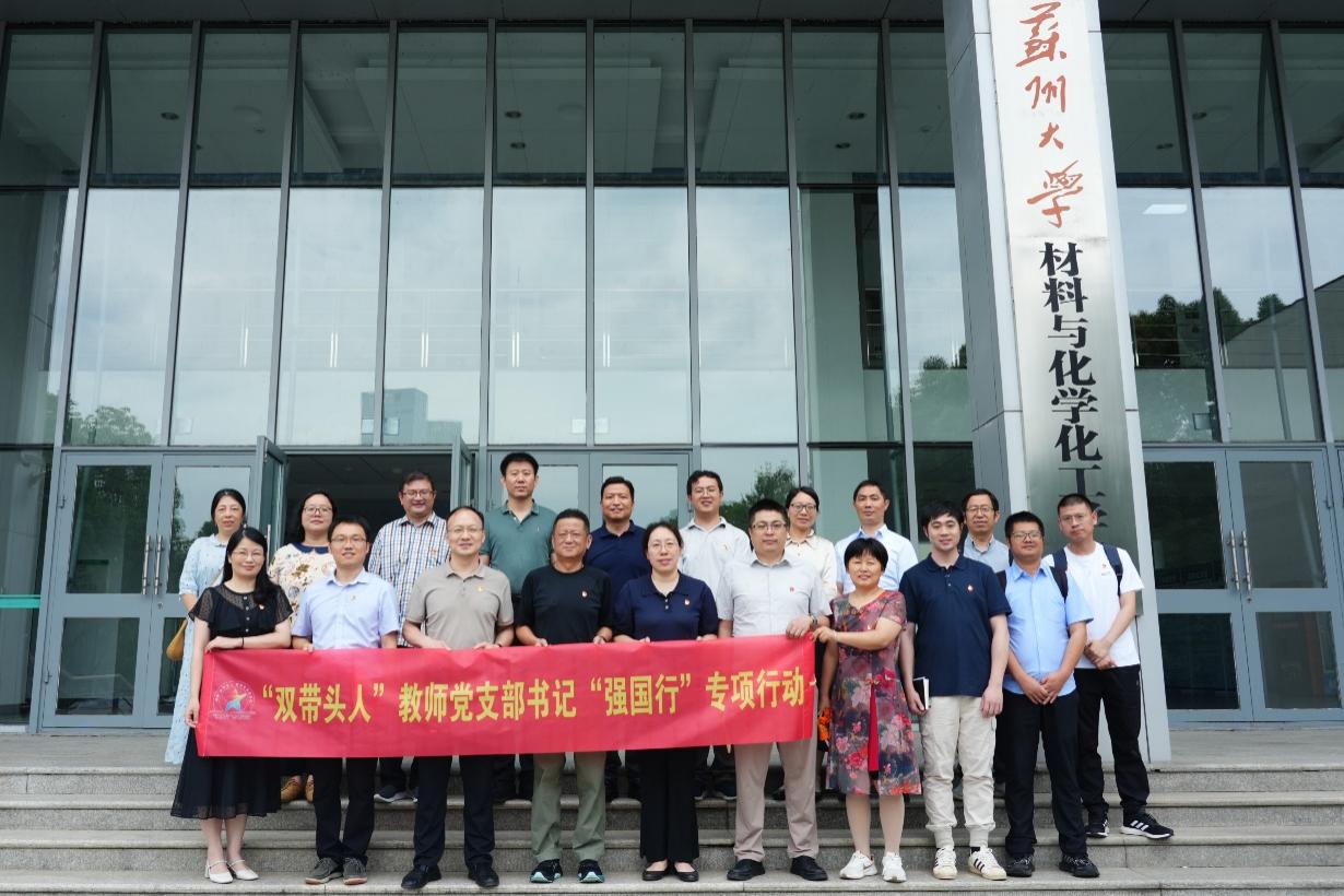 为深入学习贯彻党的二十大、二十届三中全会精神,全面贯彻新时代党的建设总要求,充分发挥基层党组织的领导力、凝聚力和战斗力,进一步提升党建工作质量,6月19日,常州大学材料科学与工程色播平台 (以下简称常大材料色播平台 )党委书记储志新、高分子系教工支部书记黄文艳以及支部党员代表来访苏州大学色播平台 (以下简称苏大材化部)开展联合主题党日活动。苏大材化部党委书记陆岸、学部副主任朱健、高分子系教工党支部书记何金林、物理及分析化学教工支部书记徐敏敏、高分子科学与工程系主任宋波等参加活动。
