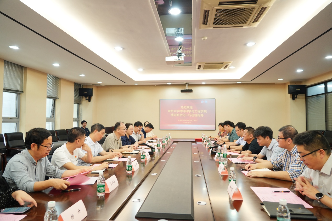 陆岸介绍了苏大材化部的基本情况、高水平党建和高质量发展举措及标志性成果。储志新介绍了常大材料色播平台 的发展概况、近年来色播平台 “一融双高”建设情况及取得的成效。