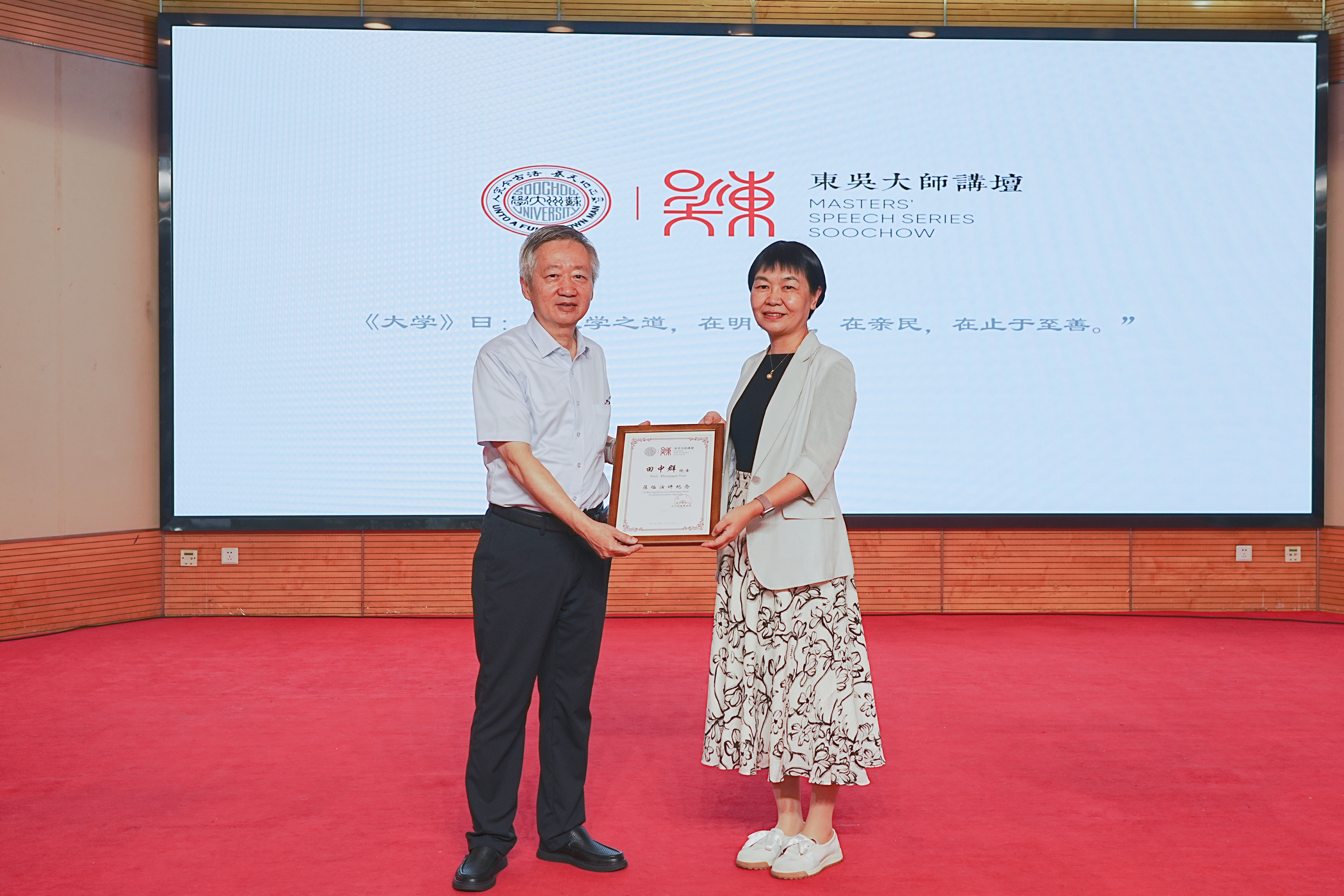 党委教师工作部部长林萍代表色播平台 向田中群赠送了“东吴大师讲坛”纪念证书。
