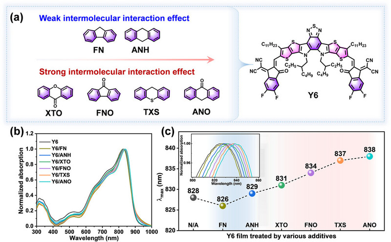 Abstract: The ordered π-stacking with face-on orientation and uniform phase separation in active layer is essential to develop high-performance organic solar cells (OSCs). Differing from phase separation optimization, it is challenging to regulate the molecular stacking of organic semiconductors during the film-formation process. In this contribution, a universal strategy is established to simultaneously optimize the π-stacking and aggregation of organic semiconductors via intermolecular interaction with solid additive. It is demonstrated that the strong intermolecular interaction between solid additive and organic semiconductors is a critical factor in molecular stacking regulation. Benefitting from the more ordered molecular stacking of active layer aroused by the additive treatment, significantly improved photovoltaic performance can be realized in OSCs. Particularly, an outstanding power-conversion efficiency (PCE) of 20.04% is achieved in the D18:N3:AQx-2F-based device treated by thioxanthene, while the control device without additive treatment yields a much lower PCE of 19.00%.