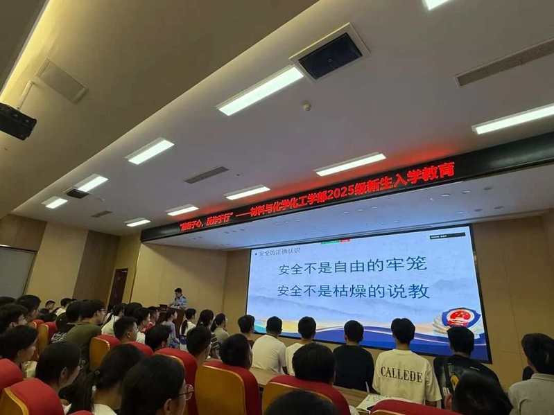 在907-1101报告厅举办了2025级新生“开学反诈第一课”专题讲座。本次活动由材化部党委统一组织,特邀苏州市工业园区永安桥派出所周培华警官担任主讲,为全体新生带来了一堂严肃而实用的反诈安全教育课。