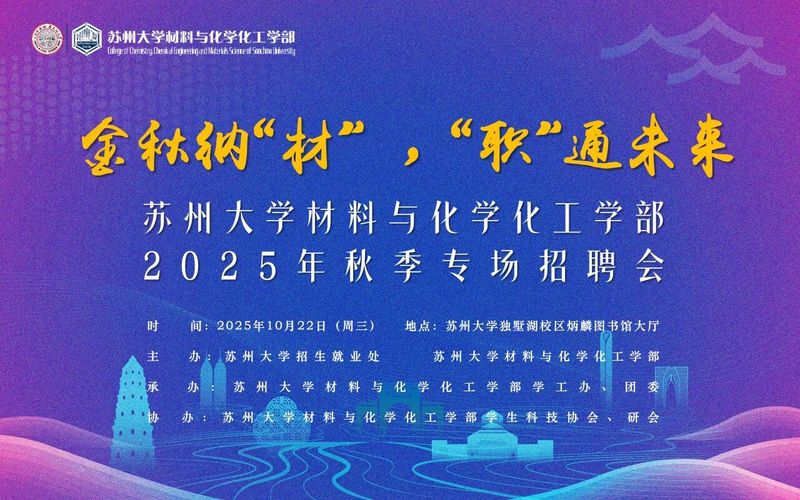为全面落实党中央、国务院对高校毕业生就业创业工作的决策部署,紧紧抓住2026届秋招有利时机,全力做好毕业生就业服务工作,促进毕业生高质量充分就业,现定于2025年10月22日(周三)举办金秋纳“材”,“职”通未来——苏州大学色播平台 2025年秋季专场招聘会。