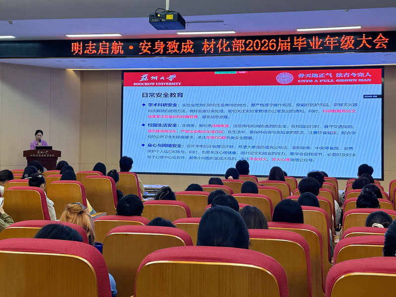 为引导毕业年级研究生坚定理想信念、科学规划未来发展,2025年10月16日,材化部于907-1101召开2026届研究生毕业年级大会。大会以“明志启航·安身致成”为主题,结合抗战胜利80周年纪念教育,引导研究生在回望历史中汲取力量,在科研实践中践行科技报国使命。